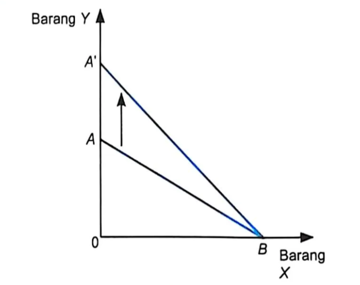 - Keluk kemungkinan pengeluaran barang Y beralih ke kanan dari AB ke A'B.