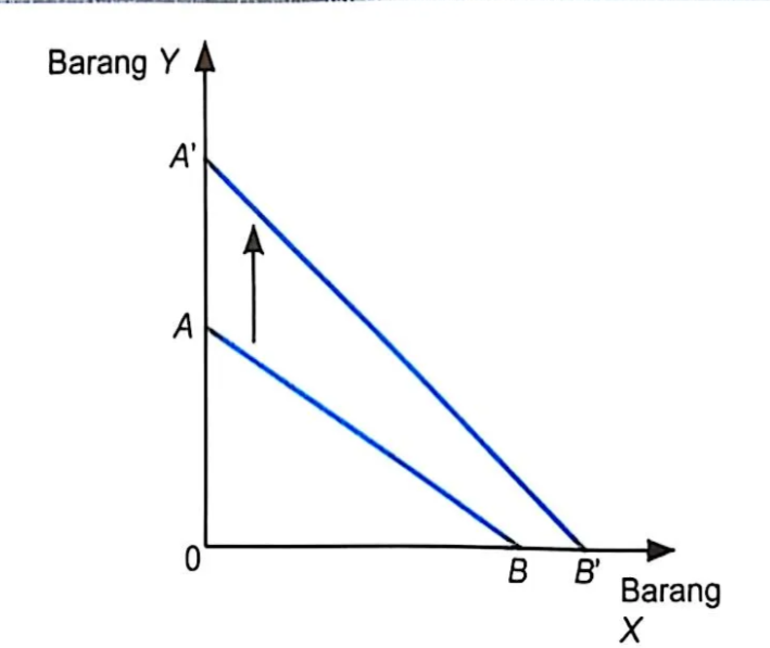 - Keluk kemungkinan pengeluaran barang X beralih ke kanan dari AB ke AB'.
