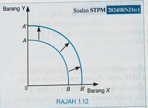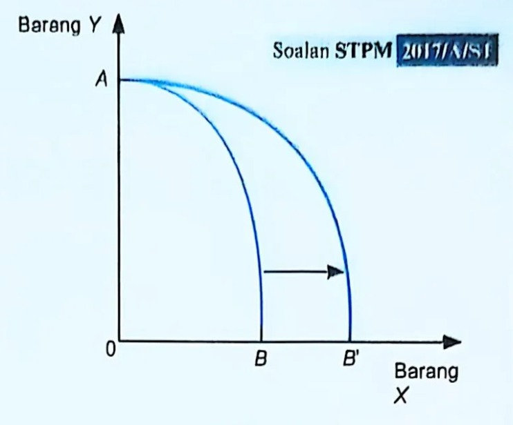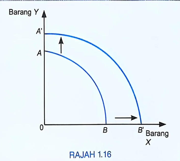 Pertambahan sumber ekonomi/perkembangan teknologi lebih cepat dalam pengeluaran barang X berbanding dengan pengeluaran barang Y