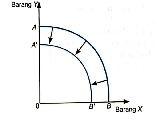 - Keluk kemungkinan pengeluaran beralih ke kanan dari AB ke A'B'.