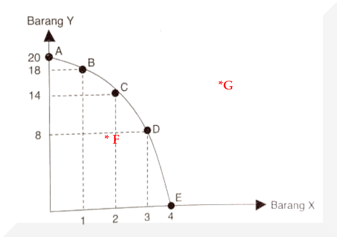 - Kapasiti pengeluaran barang Y meningkat lebih banyak daripada barang X.